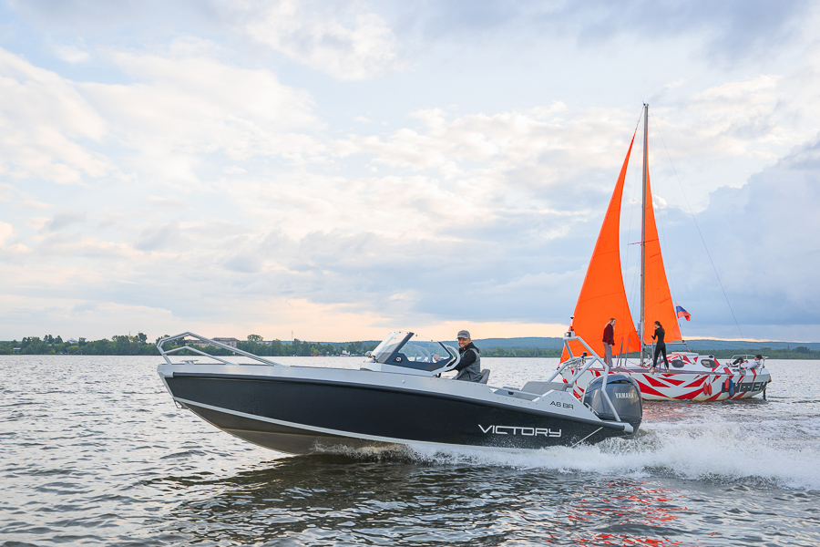 Victory A6 BR — мощная, скоростная и комфортная лодка открытого типа с пассажировместимостью до 6 человек. Универсальна, подходит для активного отдыха семьей или небольшой компанией.