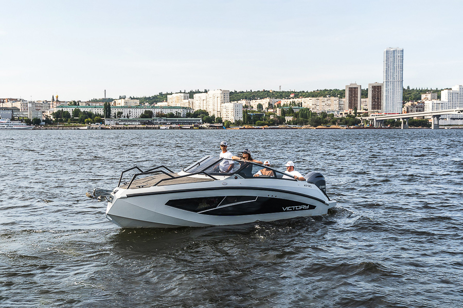Катер от Victory Boats оснащается подвесным двигателем с мощностью до 200 лошадиных сил. Это обеспечивает высокую максимальную скорость, дарящую непередаваемые эмоции при рассекании водной глади. Пассжировместимость — 6 человек, поэтому самые близкие люди будут рядом, когда вы решите провести время на своем личном судне.