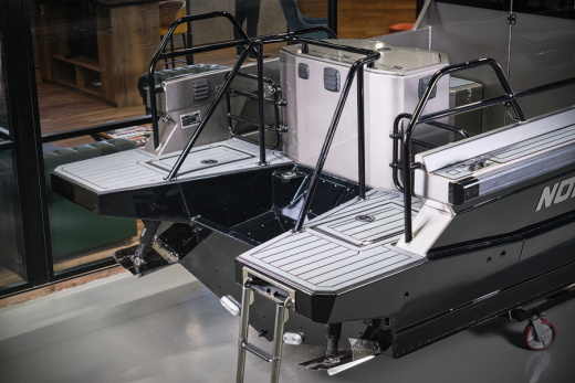 В носовом кокпите расположен отсек для швартового оборудования. Судно оборудовано топовым и ходовыми огнями, откидным трапом, электрической помпой для откачки воды из трюма, транцевыми плитами. Рулевое управление – гидравлическое.