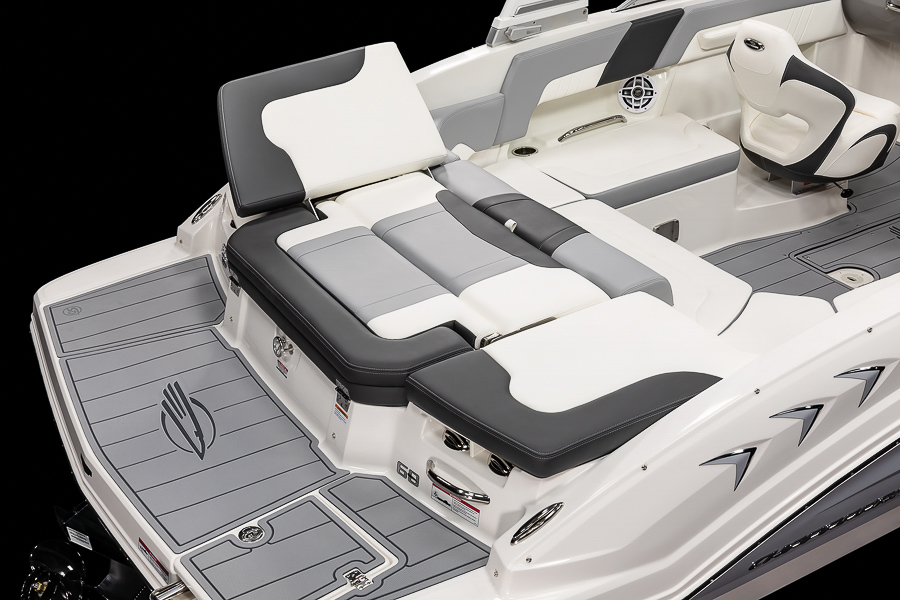 Но, что особенно привлекает в новой модели Chaparral 23 SSI —просторный U-образный диван в кокпите, который пришел на смену скромному кормовому дивану, расширив пассажировместимость с 12 до 14 человек на борту. Теперь на борт можно взять настоящий экипаж экстремалов-любителей и устроить соревнования командами.
