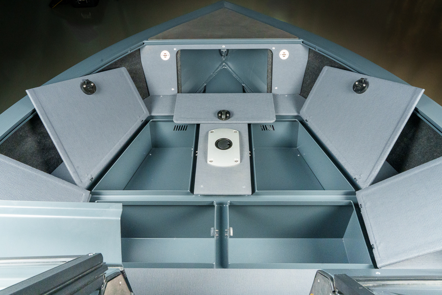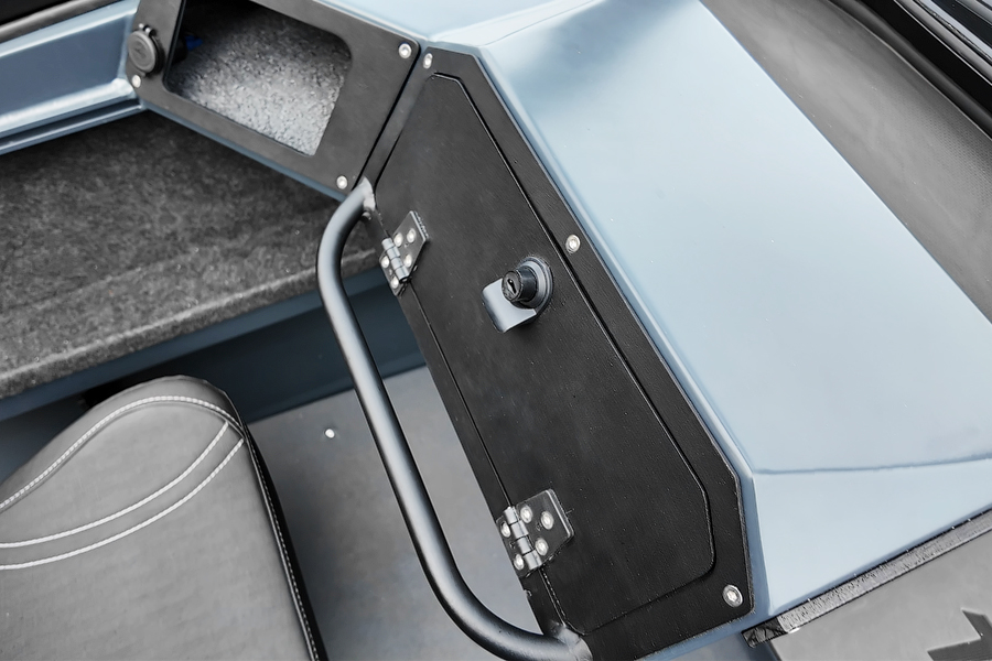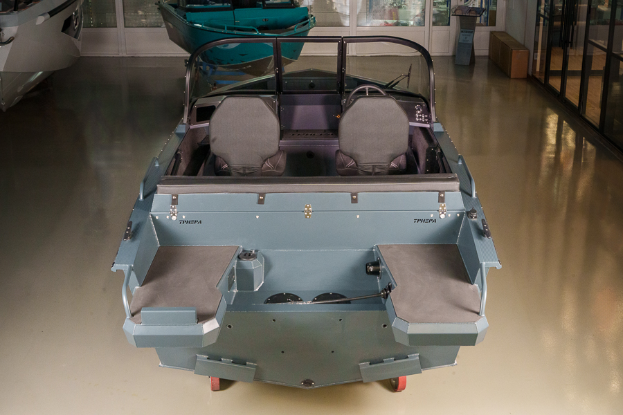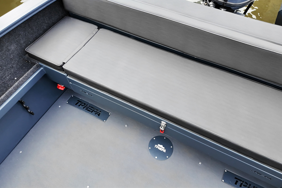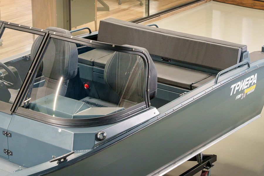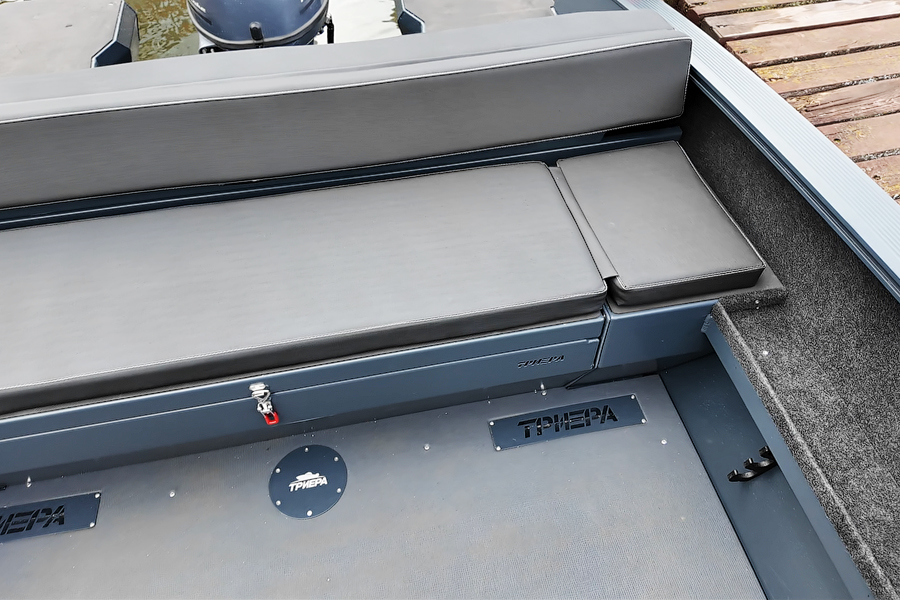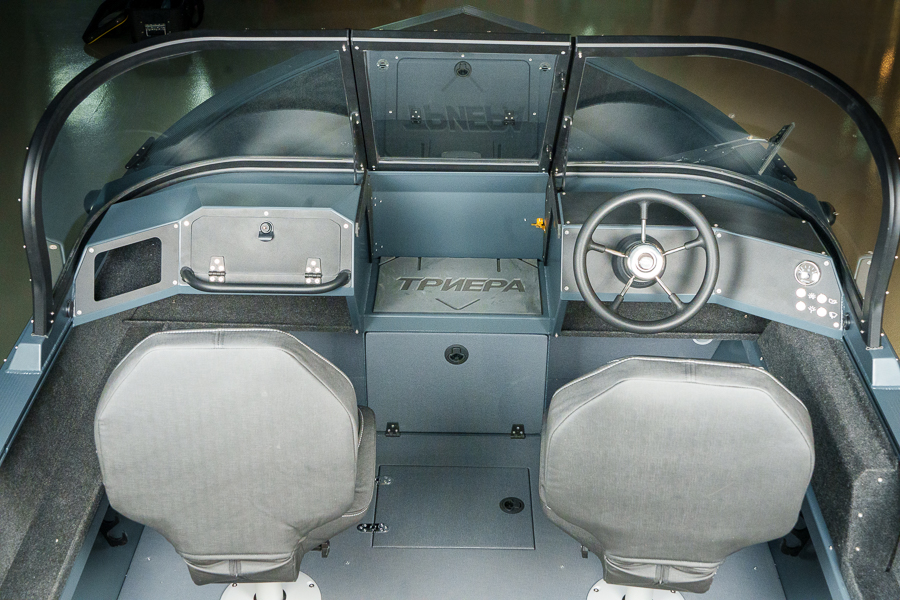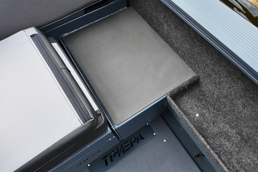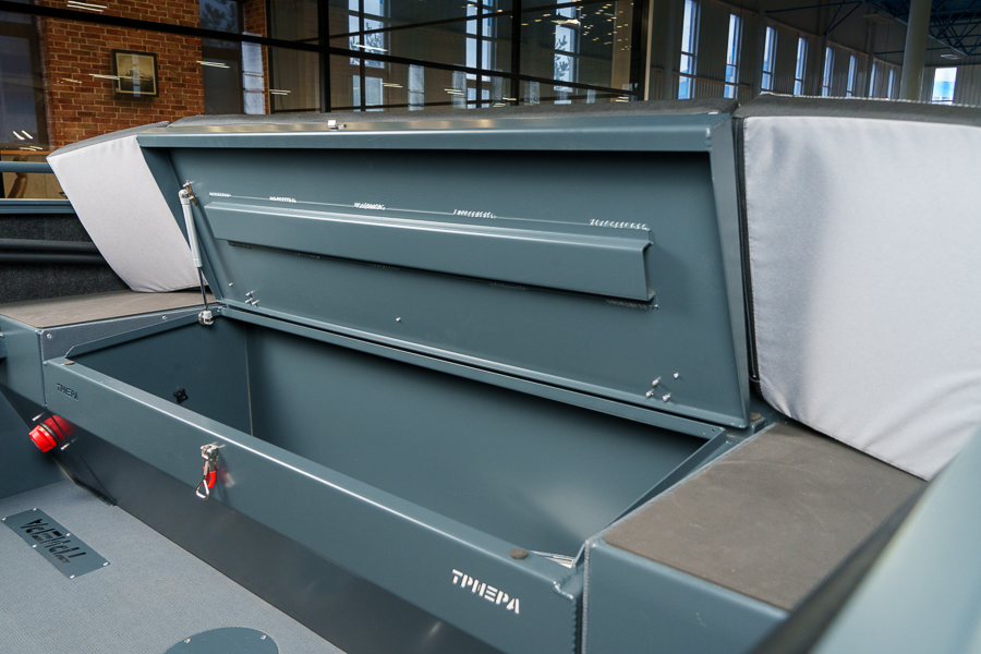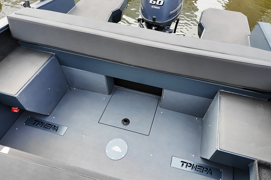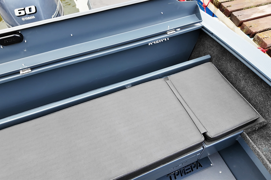 Модификация лодки Triera 460 Fish разработана для рыбаков. К услугам владельца и его друзей плоская фиш-палуба на носу и множество сухих рундуков, где можно хранить аксессуары, приманку, припасы и много других полезных вещей.