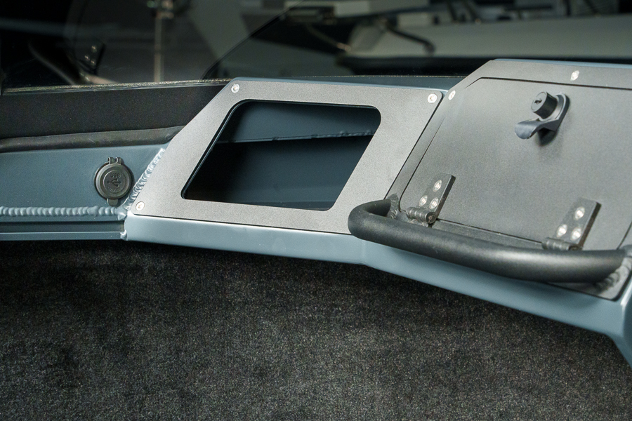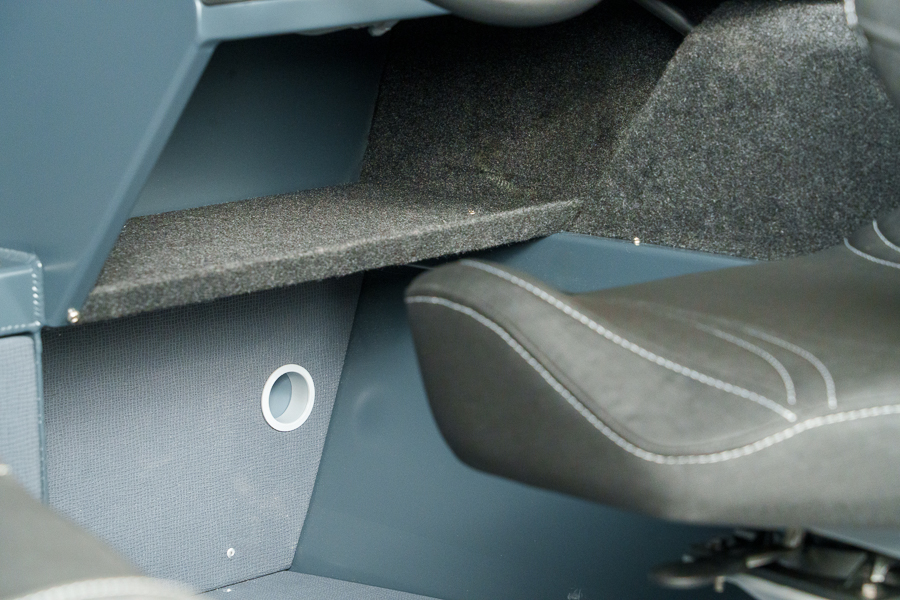 Карманы по бортам, борта в носовой части, подконсольные полки обшиты КАРПЕТОМ