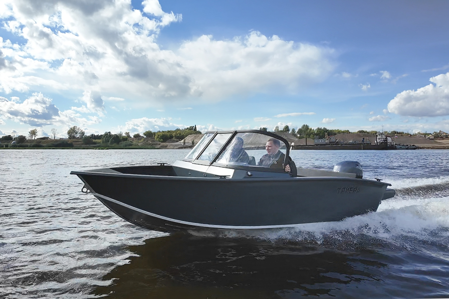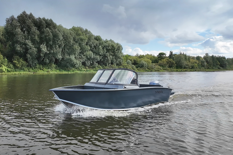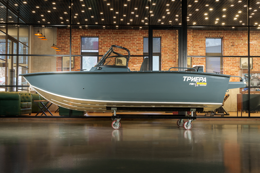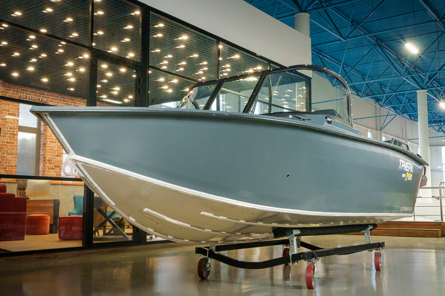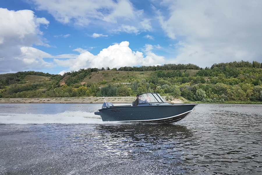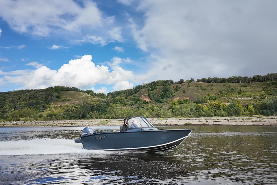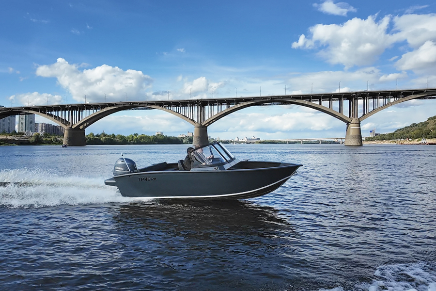 Триера 460 Фиш — полноценный рыболовный катер больших размеров с мощным мотором. Габаритная длина судна составляет 4,6 метра, а грузоподъемность 380 кг. На борту помещается до 5 пассажиров, включая капитана. Лодка предназначена для установки подвесного силового агрегата мощностью до 70 л.с. На ней можно уходить от берега на 5 км и не бояться волны высотой до 1 метра.