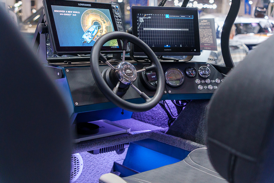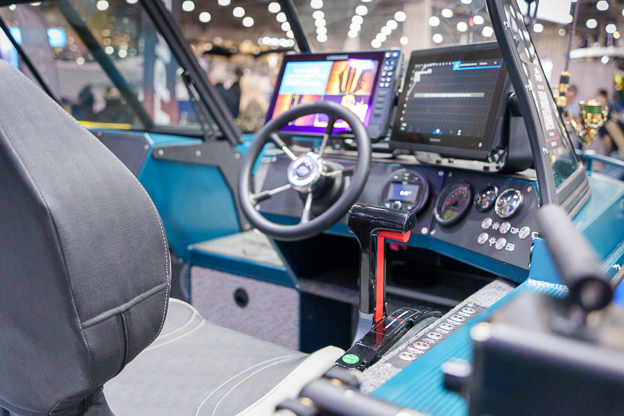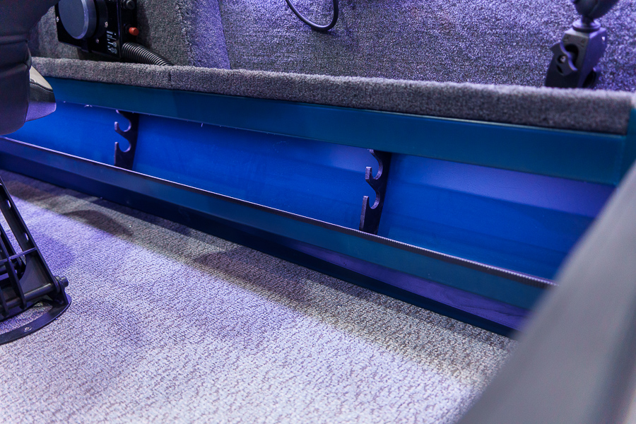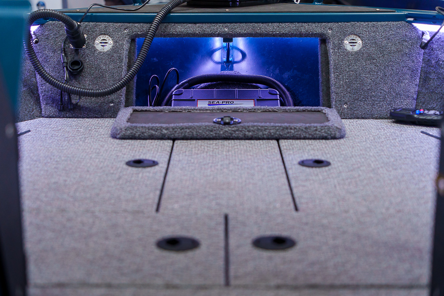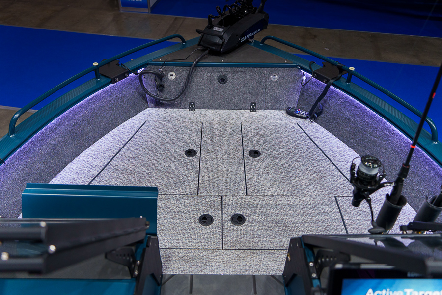Все носовое пространство занято фиш-палубой. Пройти туда можно через проходв консоли. Предусмотрены сухие рундуки, где можно хранить припасы и рыболовные аксессуары. Опциональные крепления для спиннингов дают возможность закрепить снасти, оставив их под рукой.