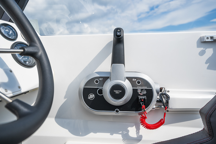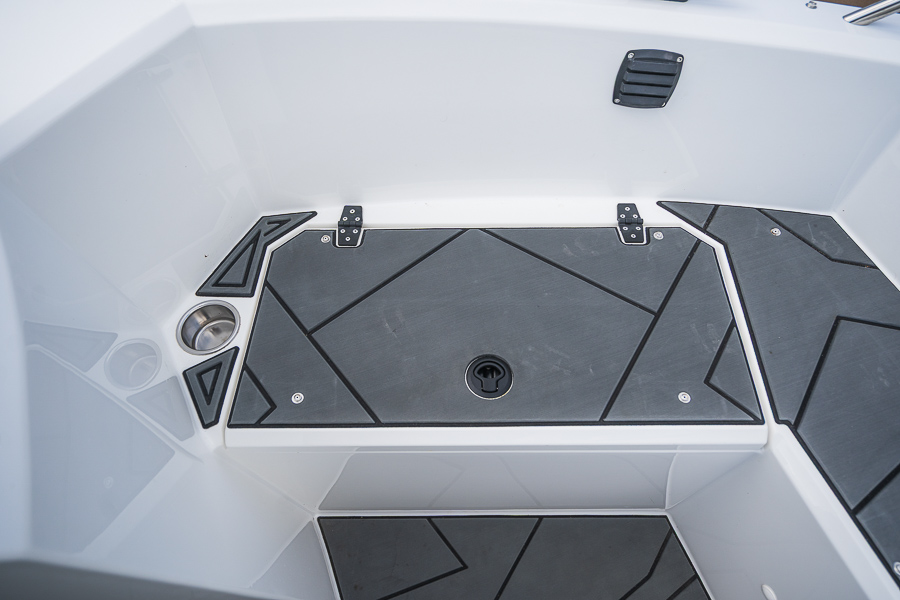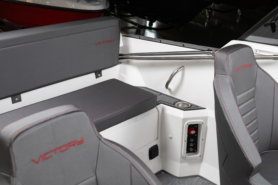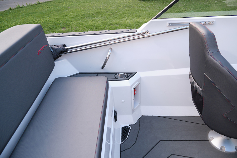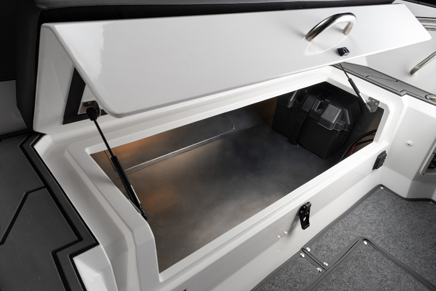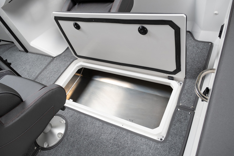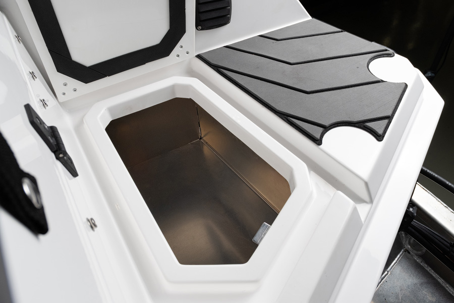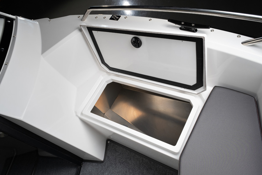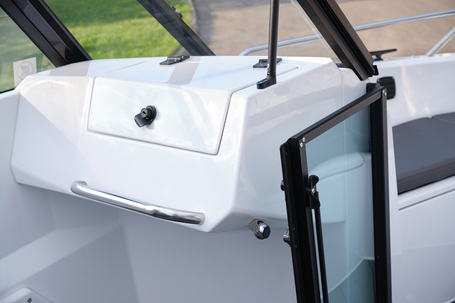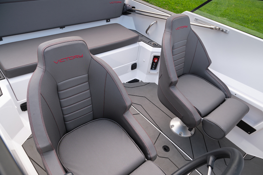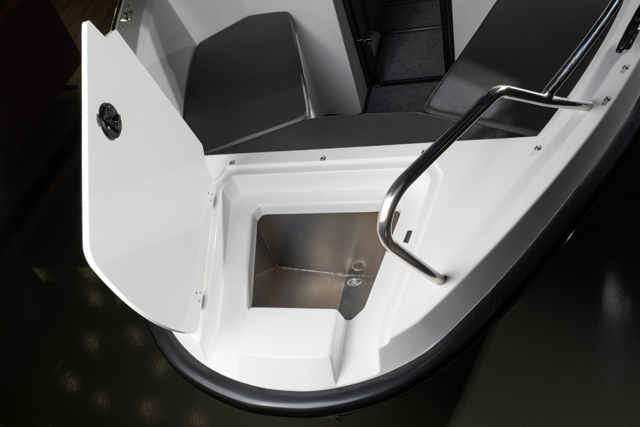 Максимальная пассажировместимость составляет 5 человек. Для борта предусмотрено оснащение подвесным мотором мощностью 80 л/c. Салон укомплектован регулируемыми сиденьями. Тканая обивка Spradling характеризуется стойкостью к ультрафиолету, не разрушается от агрессивных сред и не намокает.