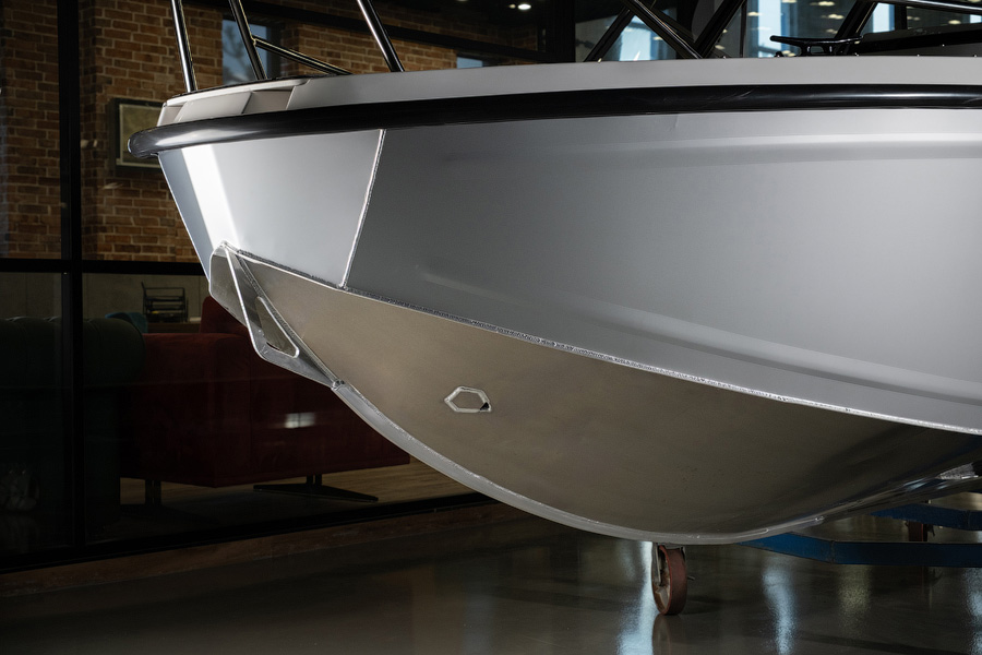 Корпус катера усилен рёбрами жёсткости для большей прочности. В качестве основного рабочего материала взят морской сплав 5083 (магний–алюминий), стойкий к солёной воде. Проварка швов выполнена двухсторонним способом, обеспечивающим повышенную герметичность соединения. Палуба из композита изготовлена методом ручной формовки с выходным производственным контролем. Блоки плавучести сертифицированы в России и Европе, гарантируя непотопляемость изделия верфи «Виктори Боатс».