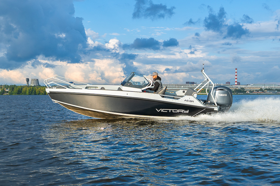 Victory A6 BR — мощная, скоростная и комфортная лодка открытого типа с пассажировместимостью до 6 человек. Универсальна, подходит для активного отдыха семьей или небольшой компанией.
