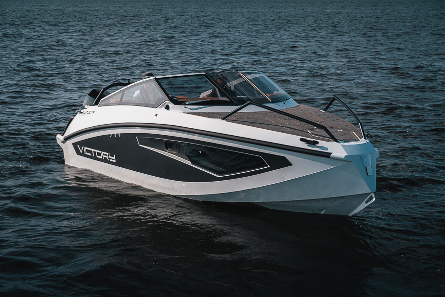 Катер от Victory Boats оснащается подвесным двигателем с мощностью до 200 лошадиных сил. Это обеспечивает высокую максимальную скорость, дарящую непередаваемые эмоции при рассекании водной глади. Пассжировместимость — 6 человек, поэтому самые близкие люди будут рядом, когда вы решите провести время на своем личном судне.